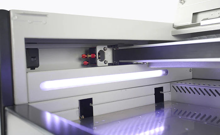 Fume Extraction and Filtering: The optional XL-300 Filtration System allows for the safe and clean operation of the laser cutter indoors.