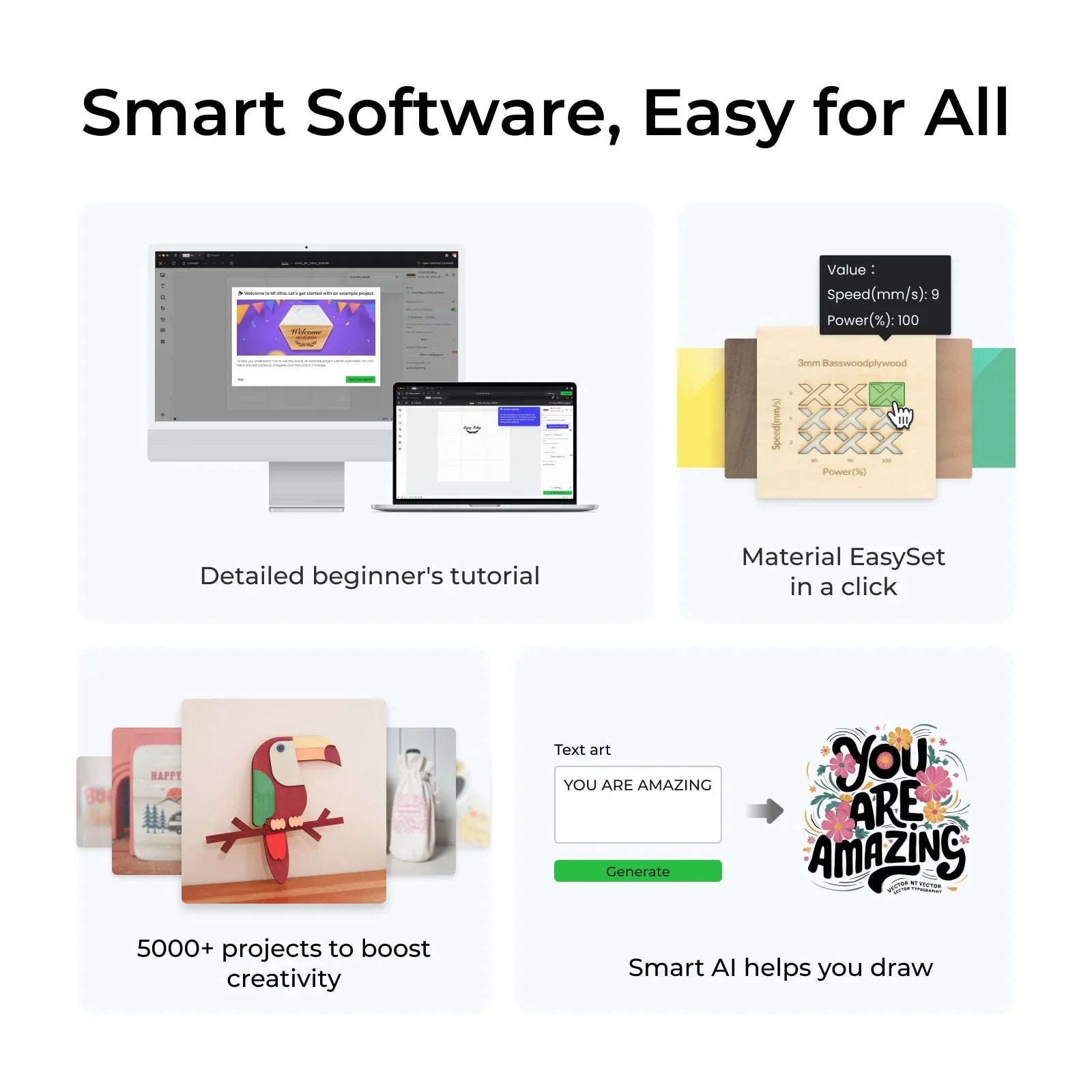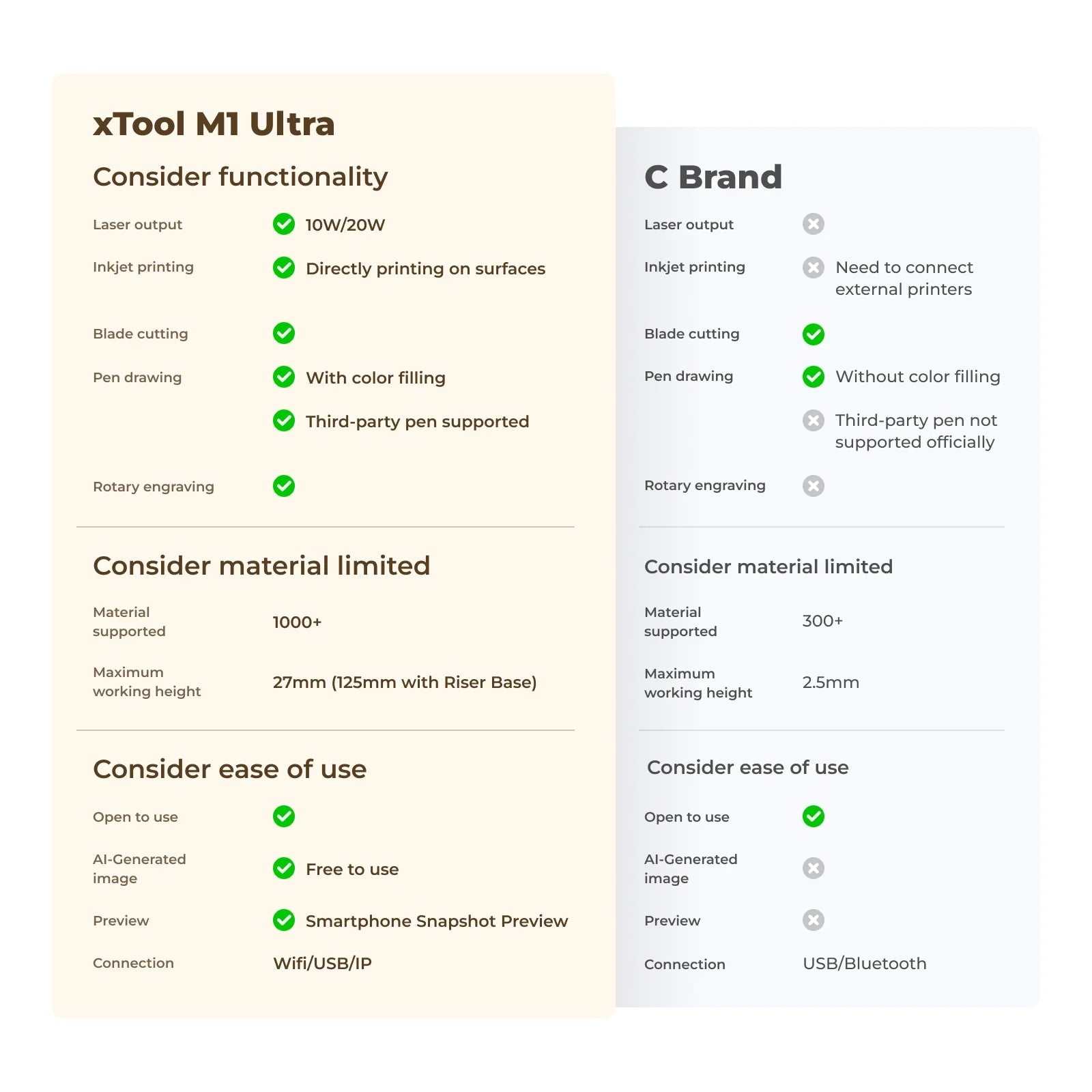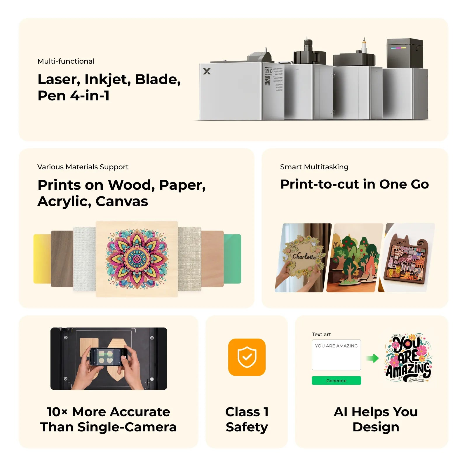 The xTool M1 Ultra is an innovative 4-in-1 craft machine that integrates laser engraving, blade cutting, inkjet printing, and hot foil stamping into a single, versatile device. Its multi-functionality allows users to work with a diverse range of materials and techniques, making it an ideal tool for creative projects in educational settings, makerspaces, and classrooms. The machine's compact design and user-friendly interface ensure accessibility for users of all skill levels, fostering an environment of creativity and hands-on learning.